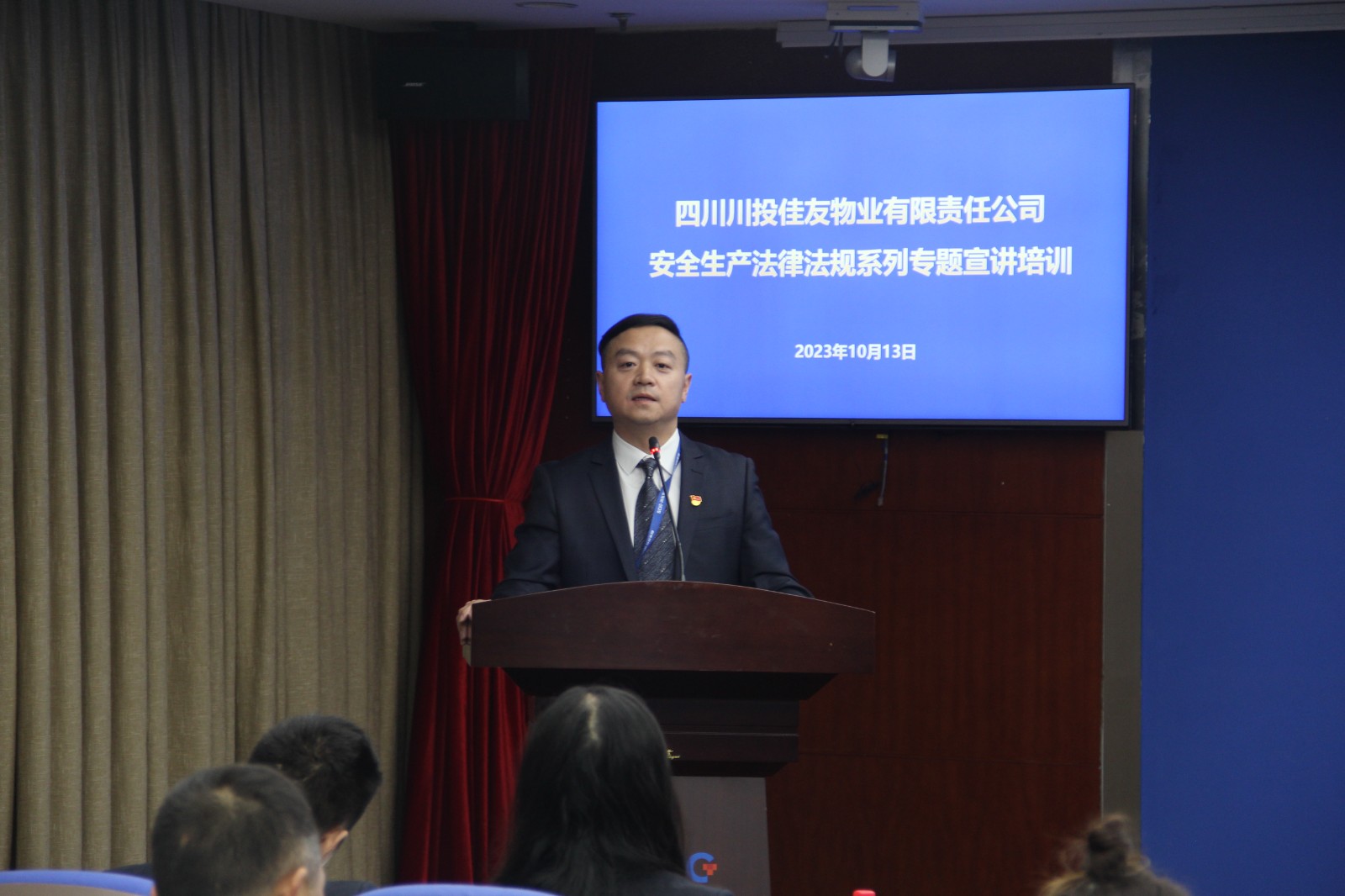 為切實貫徹習近平總書記關于安全生產的重要指示精神和《安全生產法》等法律法規的法定要求,把依法治安深入公司物業服務各個方面,2023年10 月13日下午,四川川投佳友物業有限責任公司在川投大廈601會議室開展安全生產法律法規培訓,本次培訓為公司2023年度安全生產法律法規系列培訓的第一課,由支部書記、董事長王賓授課,總經理陳志宏、副總經理侯永勝、本部管理人員、分公司及各項目負責人、部分項目管理人員以及一線員工共計68人參加了本次培訓。