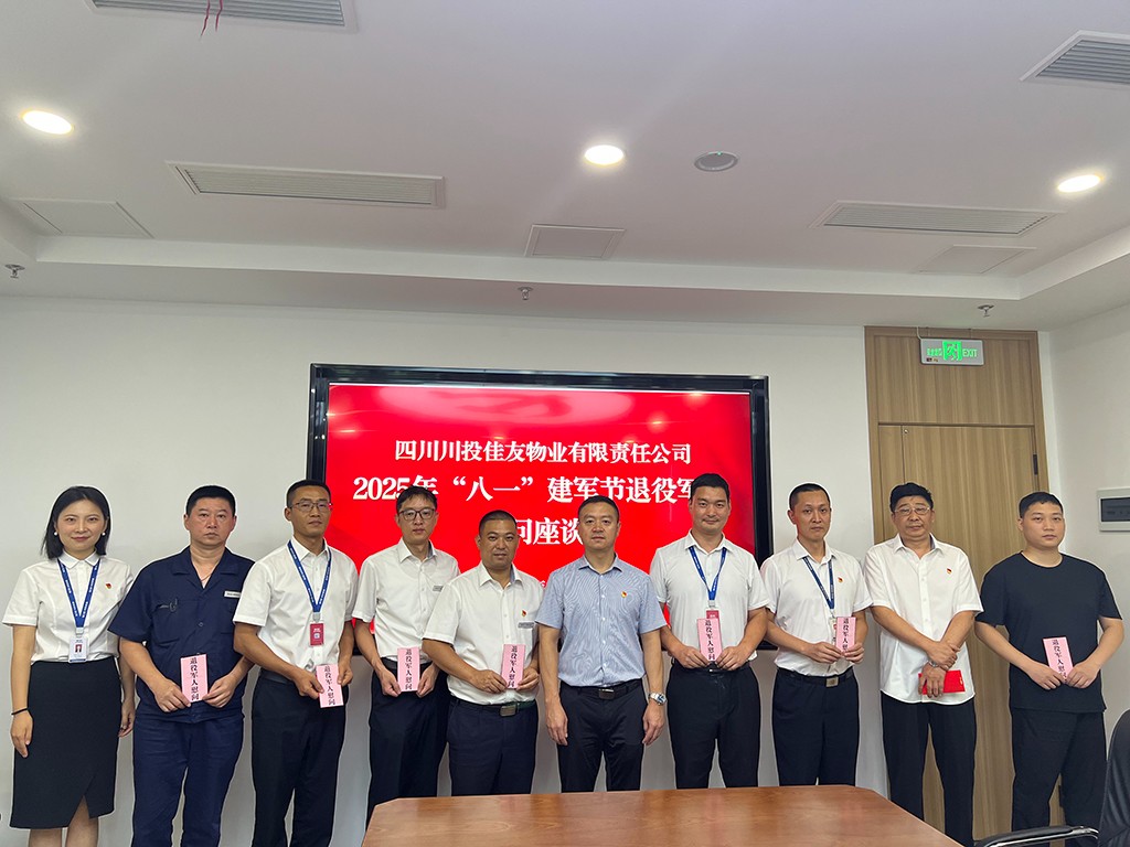8月1日,正值中國人民解放軍建軍98周年之際,為弘揚擁軍優屬光榮傳統,川投佳友開展“八一”建軍節退役軍人慰問活動。公司領導班子與退役軍人圍坐暢談,共憶軍旅歲月,共話崗位擔當,共敘公司發展,以實際行動詮釋對退役軍人的崇高敬意與深切關懷。